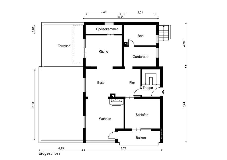 Das Untergeschoss – ebenerdig zur Straße – mit großer Garage, zwei gut belichteten Räumen (Hobby, Stauraum, Werkstatt), Kellerräume inkl. Weinkeller (und die Heizung mit den Öltanks) bietet großzügige „Spielfläche“ für Menschen, deren Leben nicht primär aus Netflix-Serien besteht. Hier kann man basteln, schrauben, hämmern, … Im Erdgeschoss, das hangseitig tatsächlich wieder ebenerdig zum Garten ist, findet sich eine schöne Wohnung, die für zwei Personen perfekt passt. Neben dem Wohnzimmer mit Kachelofen, Balkon und schönem Blick übers Tal findet sich hier ein Esszimmer, die Küche mit Terrasse, ein großzügiges Bad und ein Schlafzimmer. Im Dachgeschoss ist die Situation ganz ähnlich, nur wurde hier der Anbau noch gar nie in Betrieb genommen – ist also seit 1974 im Rohbauzustand. Aber auch hier kann man eine sehr schöne Wohnung daraus machen. Diese beiden Ebenen können also am Ende sowohl ein großzügiges Familienheim mit vier Schlafzimmern werden oder man belässt es bei zwei Wohneinheiten. Ganz wie Sie wünschen. Auf dem Dachboden, der gut über eine normale Treppe erreichbar ist, ist reichlich Stauraum vorhanden. Der Außenbereich ist erst nach ein wenig Umgestaltung als Kinderspielplatz geeignet, momentan sind hier Beete angelegt, so dass man direkt beginnen kann, ein wenig Obst und Gemüse anzubauen. Ein sehr geräumiges und stabiles Gartenhaus bietet jedenfalls eine gute Basis für Gartenaktivitäten und Grillabende. Das Haus selbst ist in gutem Zustand, trockene Kellerräume, sehr massiv gebaut, gut aufgeteilt. Die EG-Ebene war jahrelang vom Eigentümer und seiner Frau bewohnt, wurde aber schon lange nicht mehr renoviert. Im Dachgeschoss wurde die Wohnung zwar ursprünglich ausgebaut, nachdem 1974 aber ein Anbau ans Haus kam, hat man sich den restlichen Ausbau dann aufgespart – und wohl nie gebraucht. Es ist aber alles vorbereitet. Um es positiv zu formulieren: Sie brauchen hier keine Tapeten mehr abzuziehen.Sonstiges
